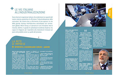 Sono diverse le esperienze italiane che evidenziano la capacità del nostro sistema produttivo di affrontare l’industrializzazione delle costruzioni. Ne citiamo due a riferimento di due approcci: la via della grande impresa manifatturiera centralizzata con connessioni globali, Manni Group, e il percorso di una innovativa rete di imprese, Aakhon, in grado di capitalizzare eccellenze disperse, ma capaci di integrarsi per rispondere alla necessità di innovare sul piano del prodotto come su quello del processo.